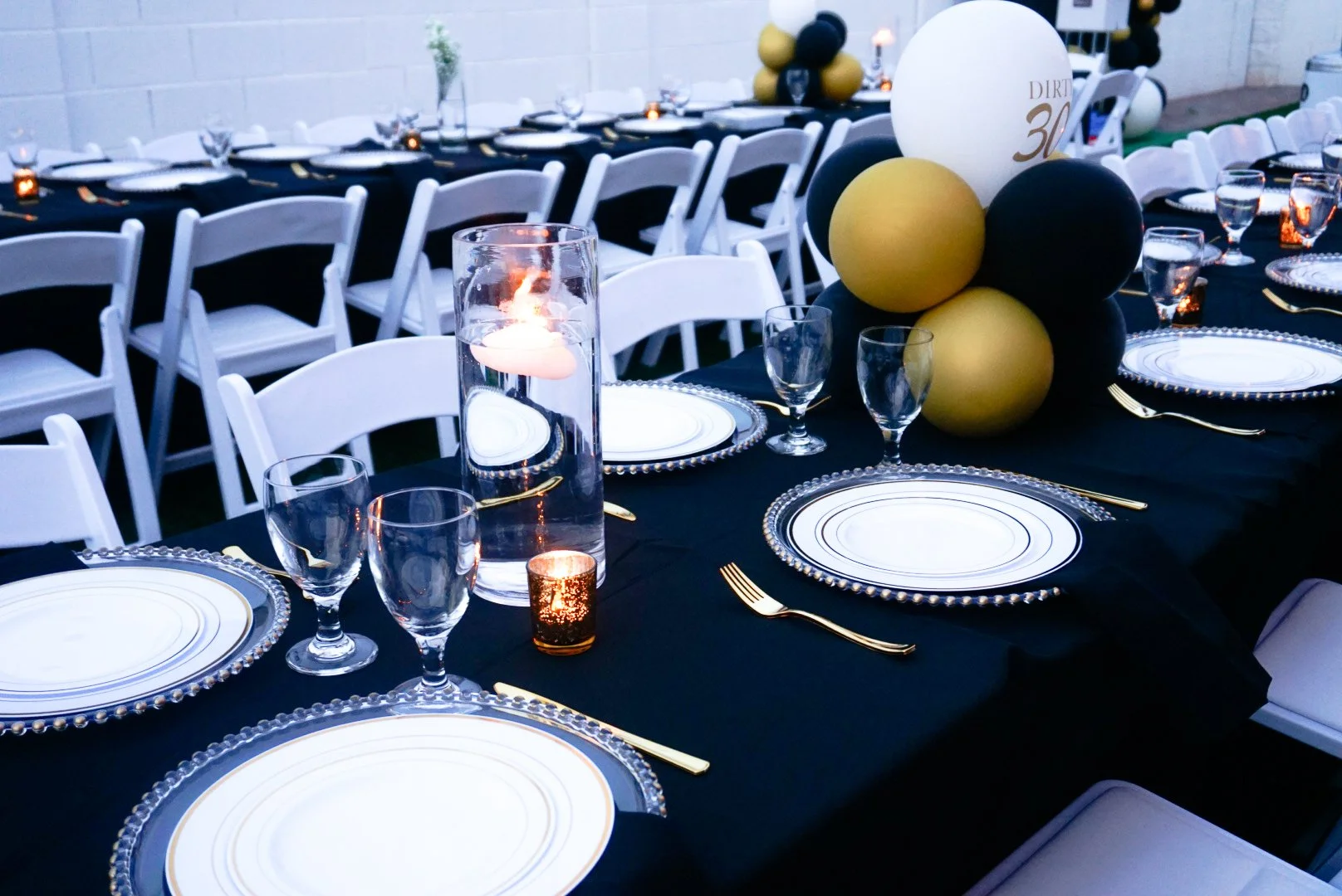 Down below are a few of the different table set up designs we provide for our clients. Whether it be birthday celebration, graduation party, small gatherings, etc, we are more than happy to help you with your event.